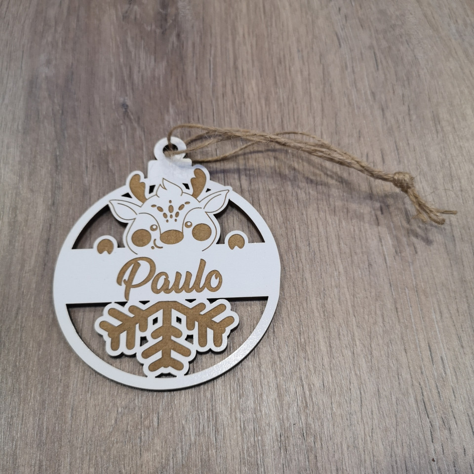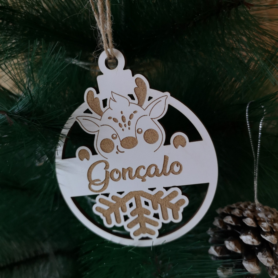 “Bola” em MDF para árvore de Natal personalizada com nome – Rena