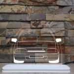 Imagem gravada no acrílico, realçando a mesma quando é emitida a luz.