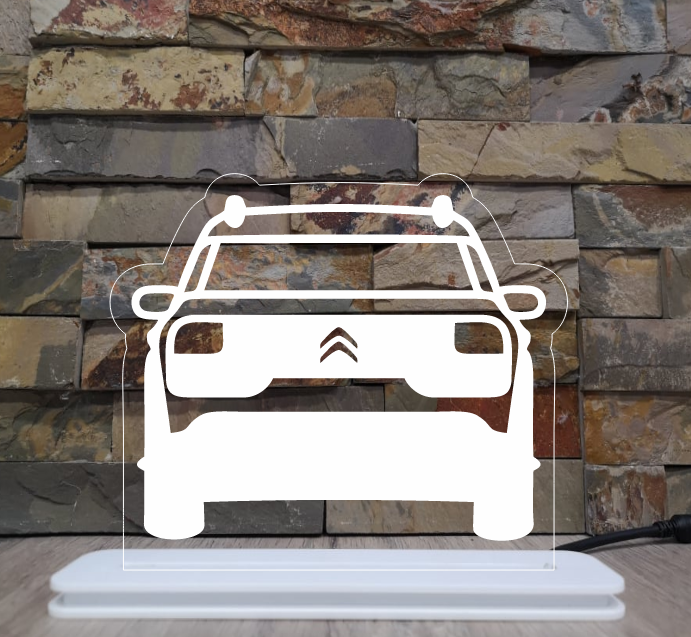 Imagem gravada no acrílico, realçando a mesma quando é emitida a luz.