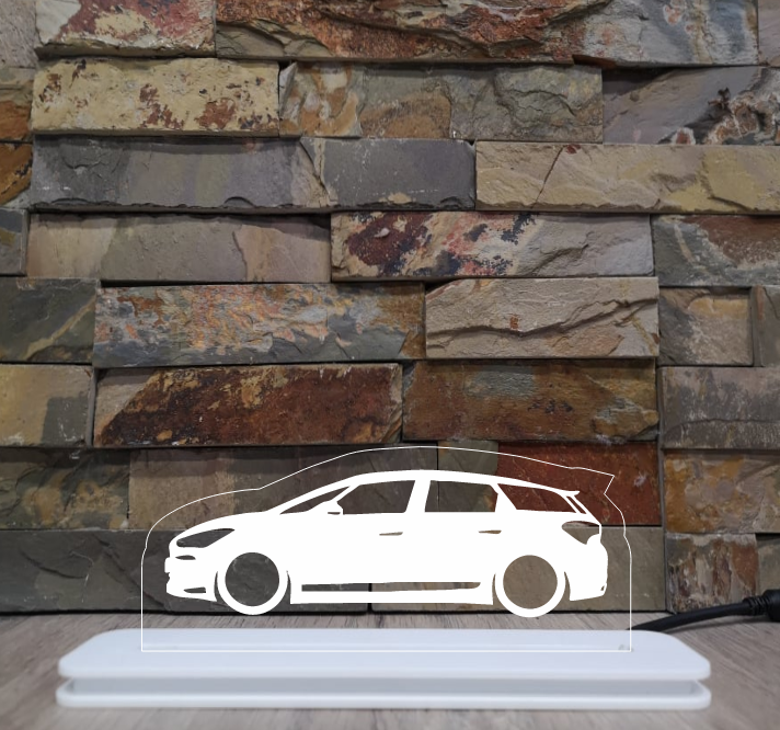 Imagem gravada no acrílico, realçando a mesma quando é emitida a luz.
