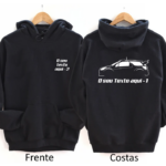 – No campo “O seu texto aqui – 2” escreva o texto que pretende estampado nessa posição da sweatshirt.Caso pretenda sem texto escreva “Sem personalização”.