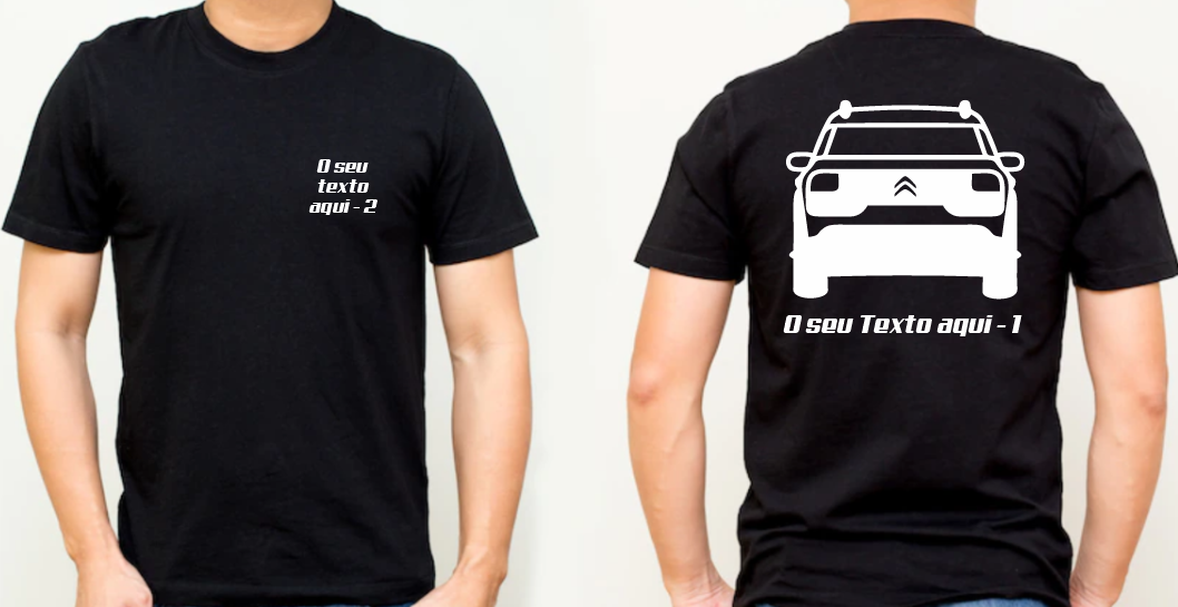 – No campo “O seu texto aqui – 1” escreva o texto que pretende estampado nessa posição daT-shirt. Caso pretenda sem texto escreva “Sem personalização”.