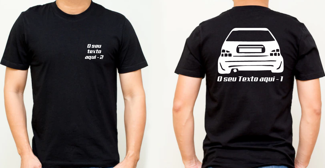 – No campo “O seu texto aqui – 1” escreva o texto que pretende estampado nessa posição daT-shirt. Caso pretenda sem texto escreva “Sem personalização”.