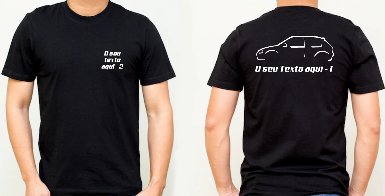 – No campo “O seu texto aqui – 1” escreva o texto que pretende estampado nessa posição daT-shirt. Caso pretenda sem texto escreva “Sem personalização”.
